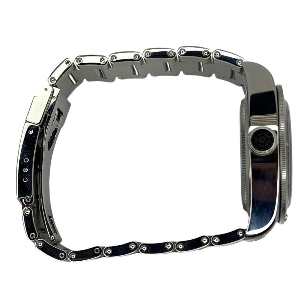 41mm Steel case and bracelet with black dial, matt green bezel, and domed sapphire crystal. Dated 2022