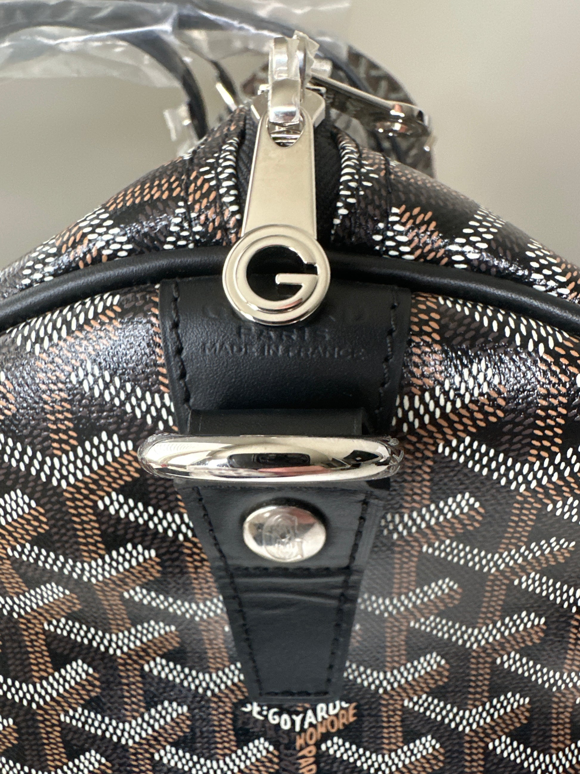 Black color Goyardine Canvas and Cervon Calf Leather exterior with yellow water-repellent cotton lining interior. Palladium hardware.