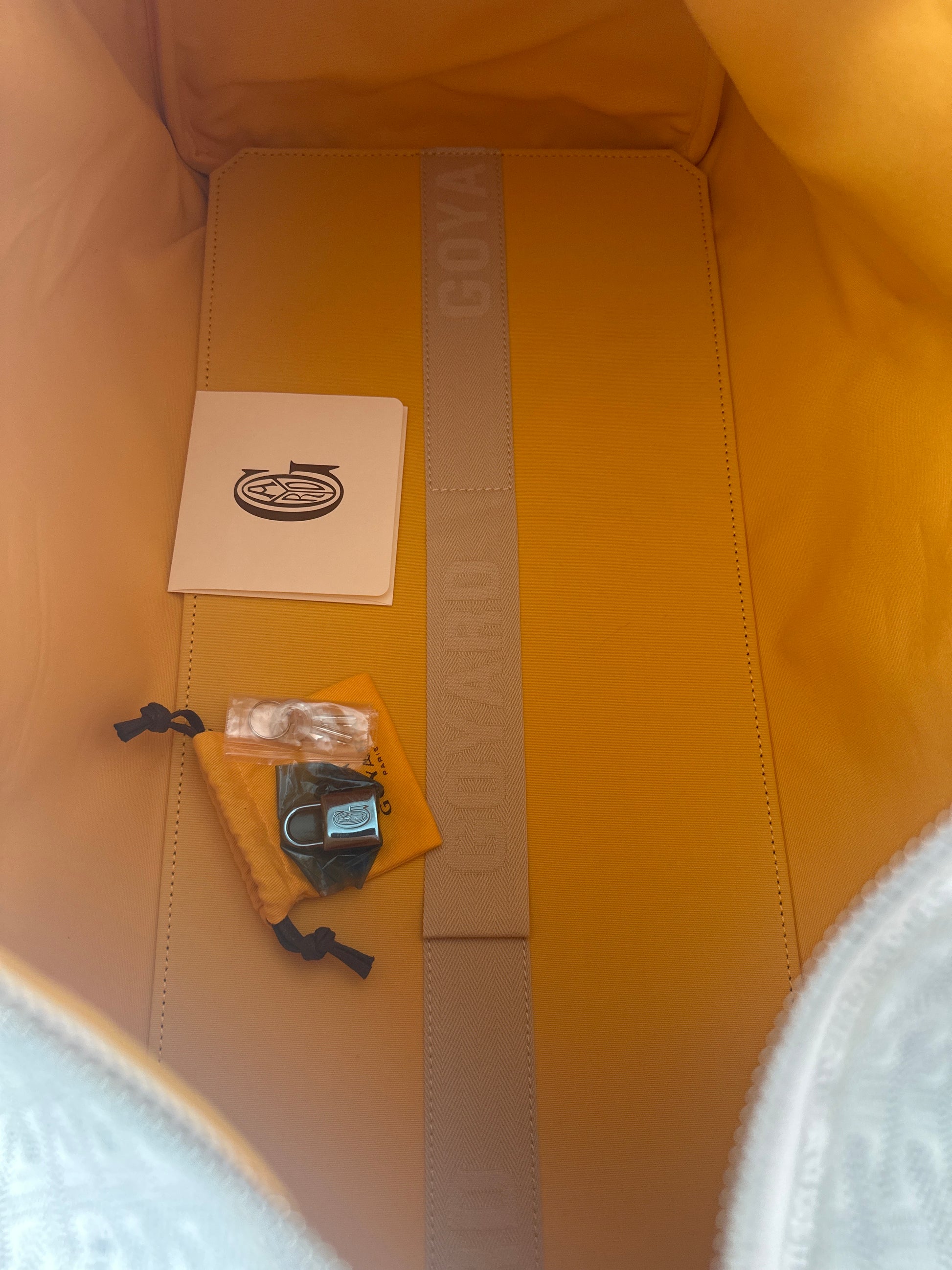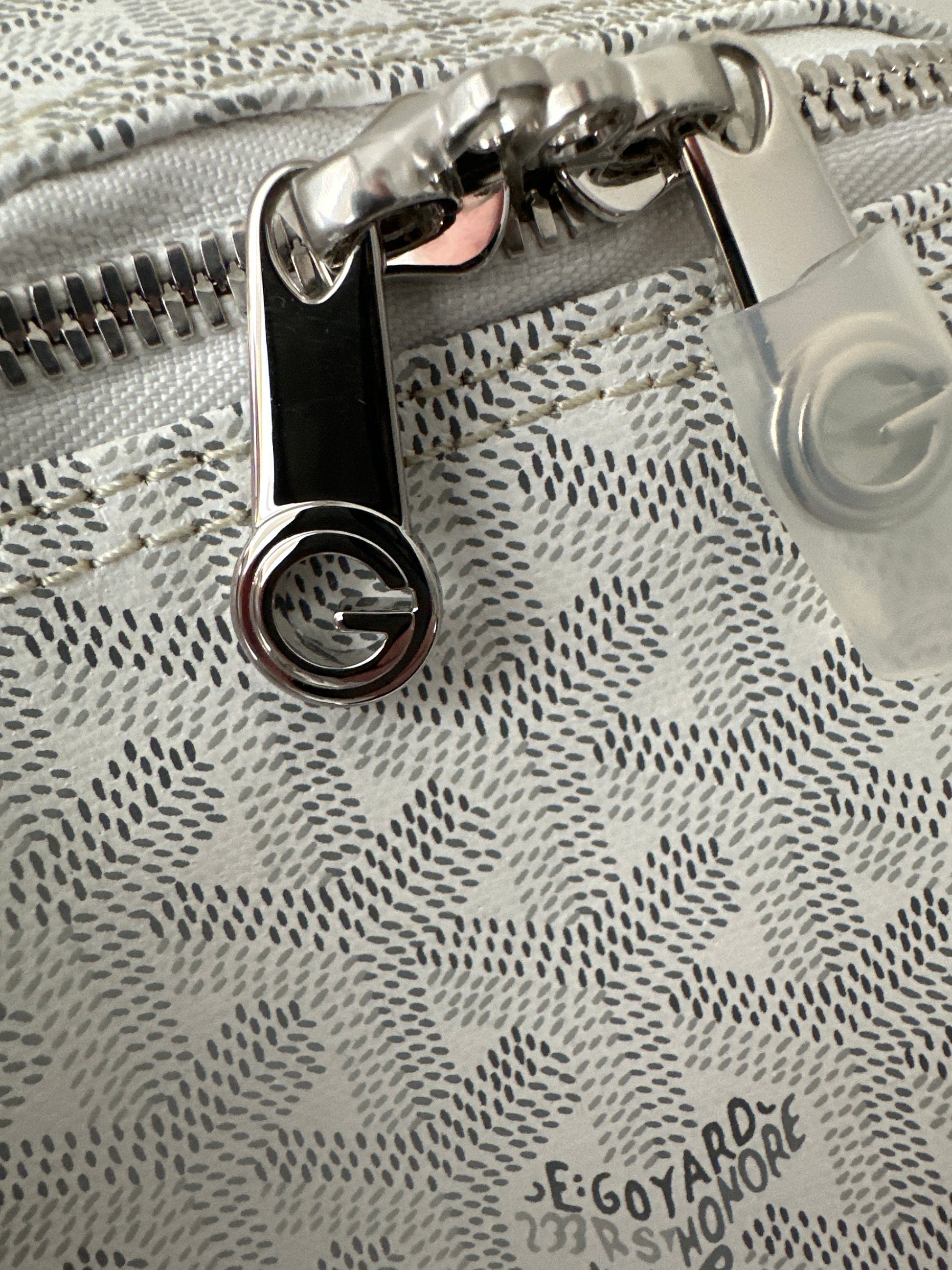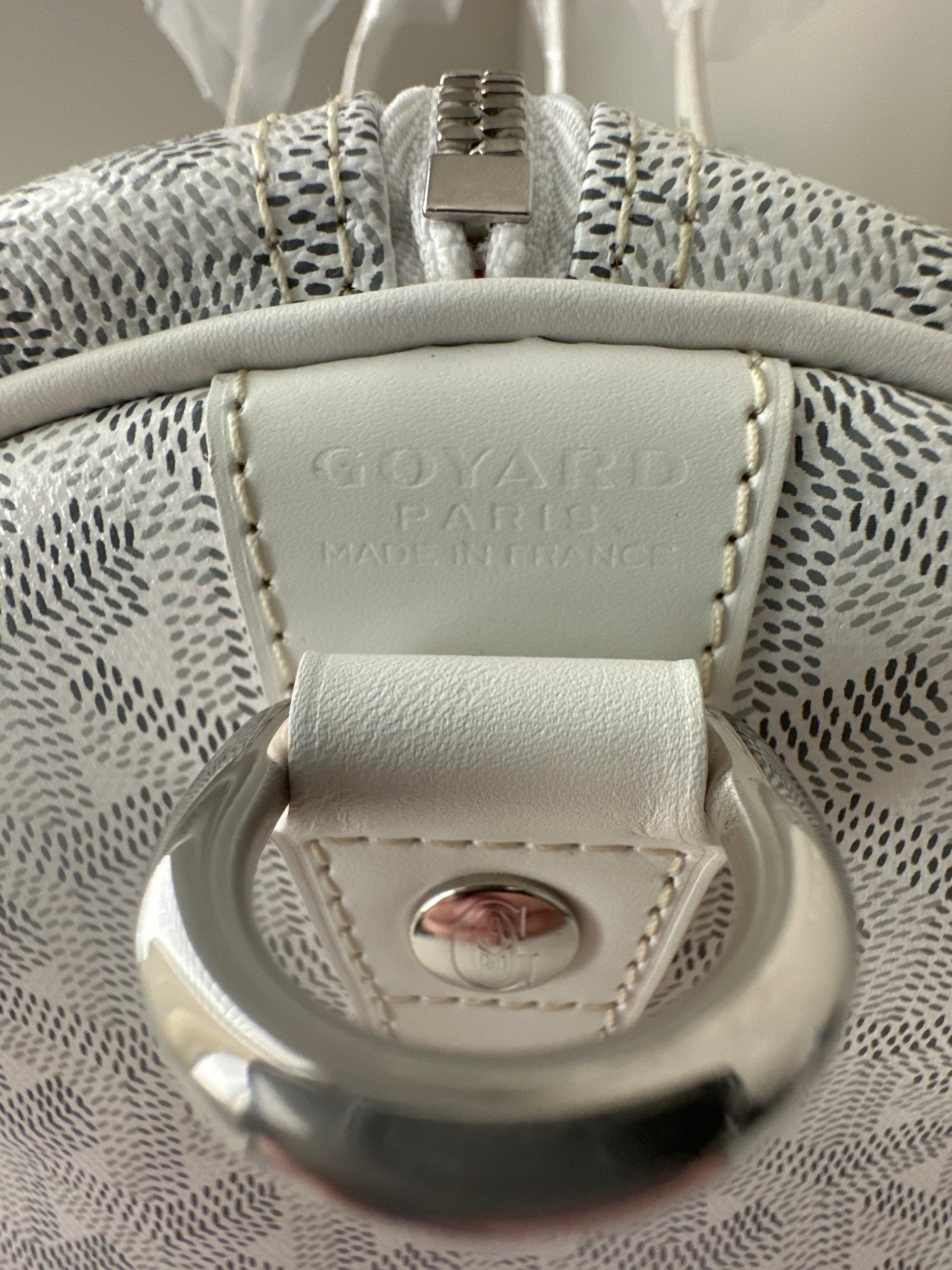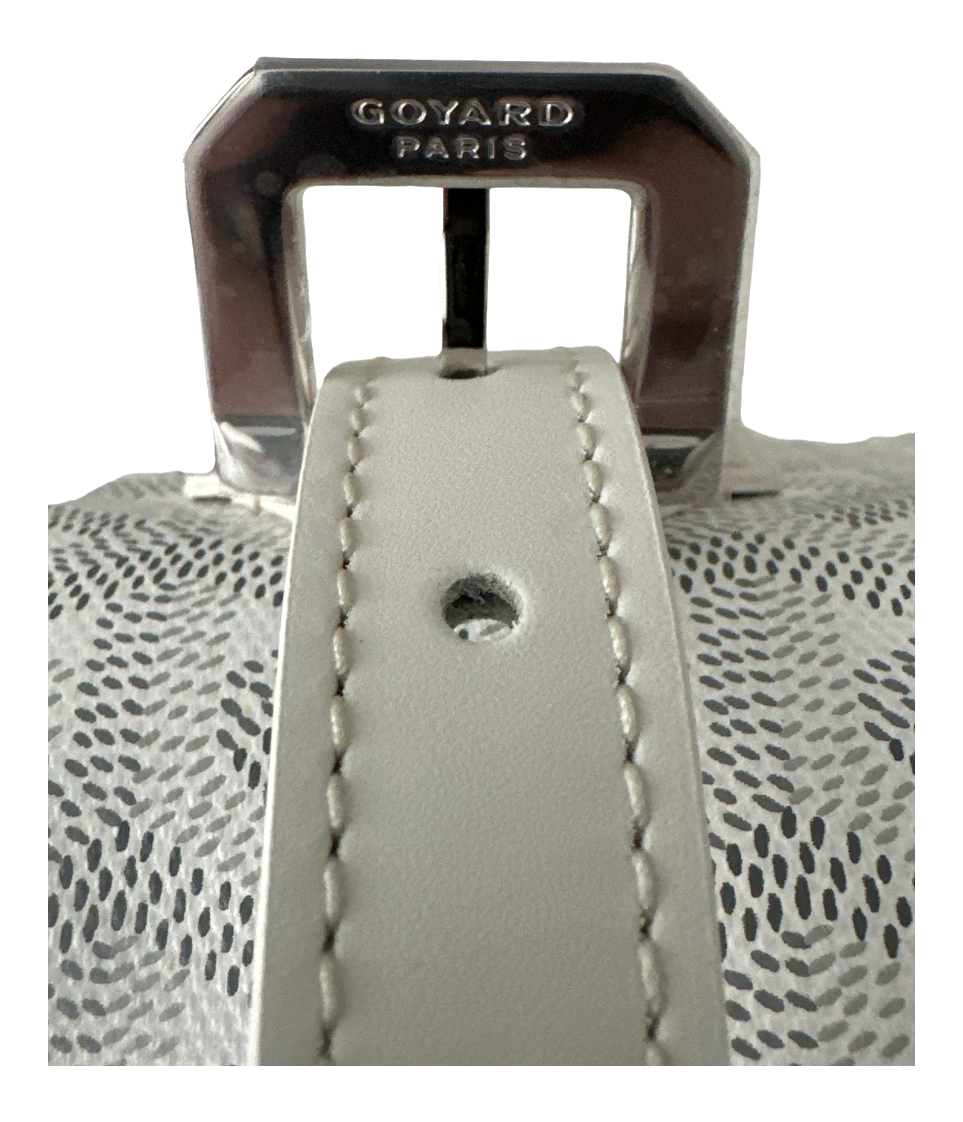 White color Goyardine Canvas and Cervon Calf Leather exterior with yellow water-repellent cotton lining interior. Palladium hardware.