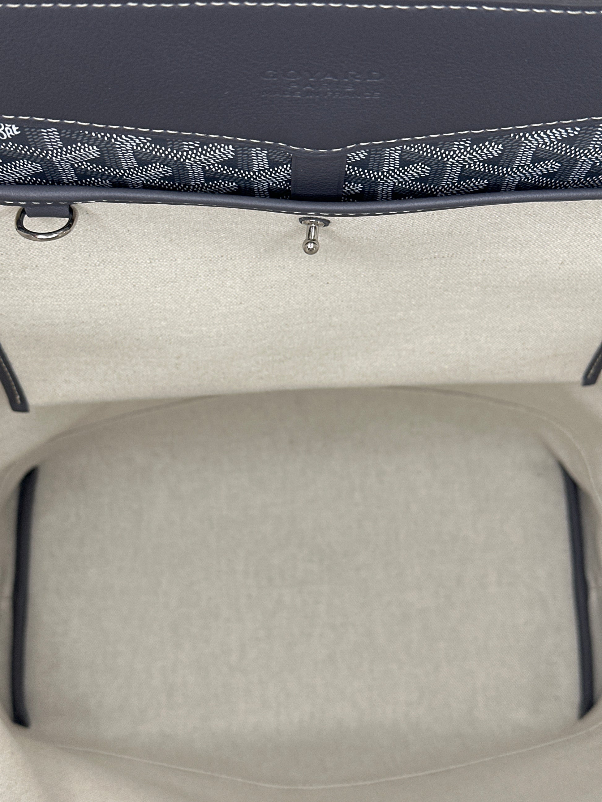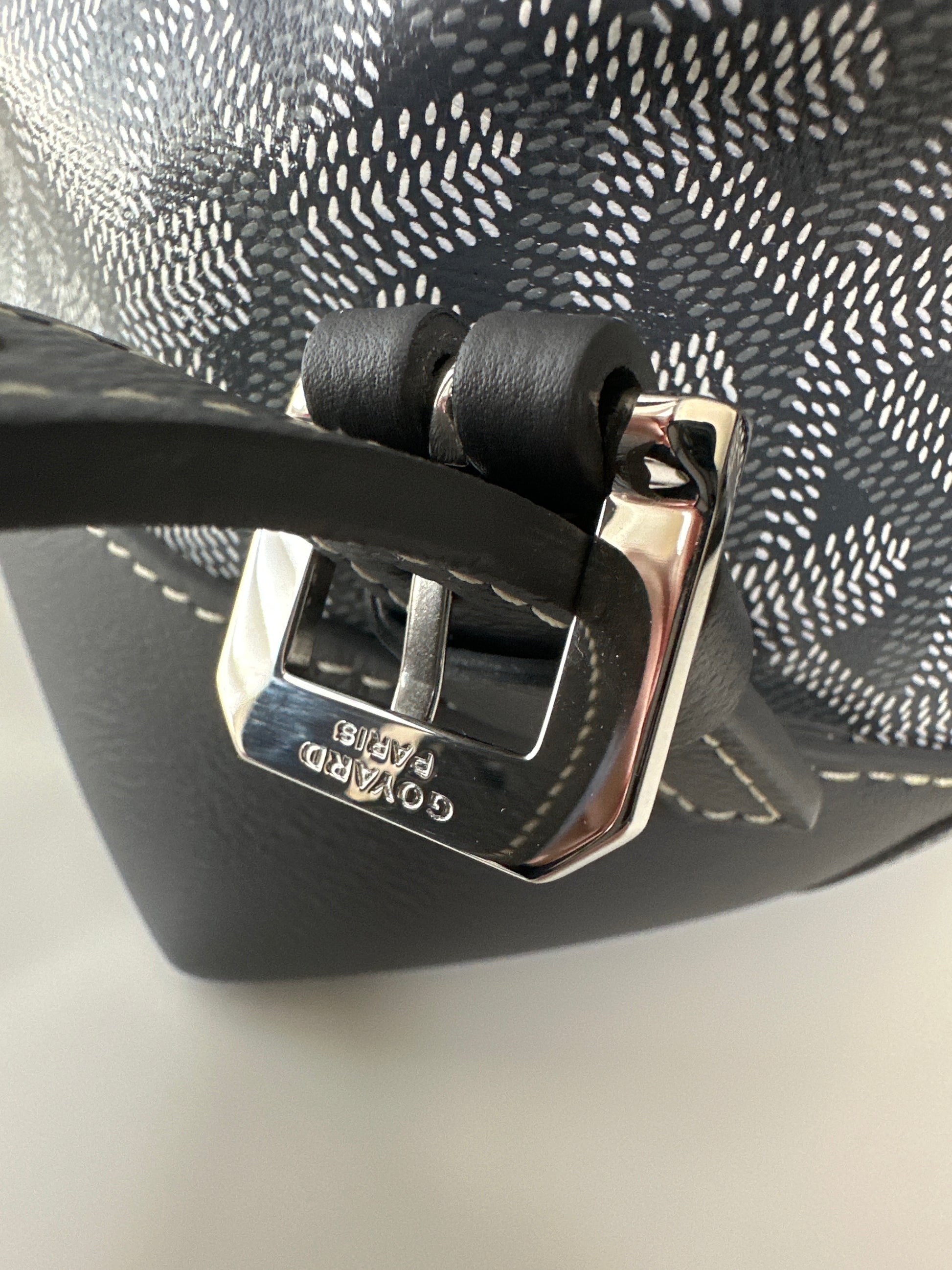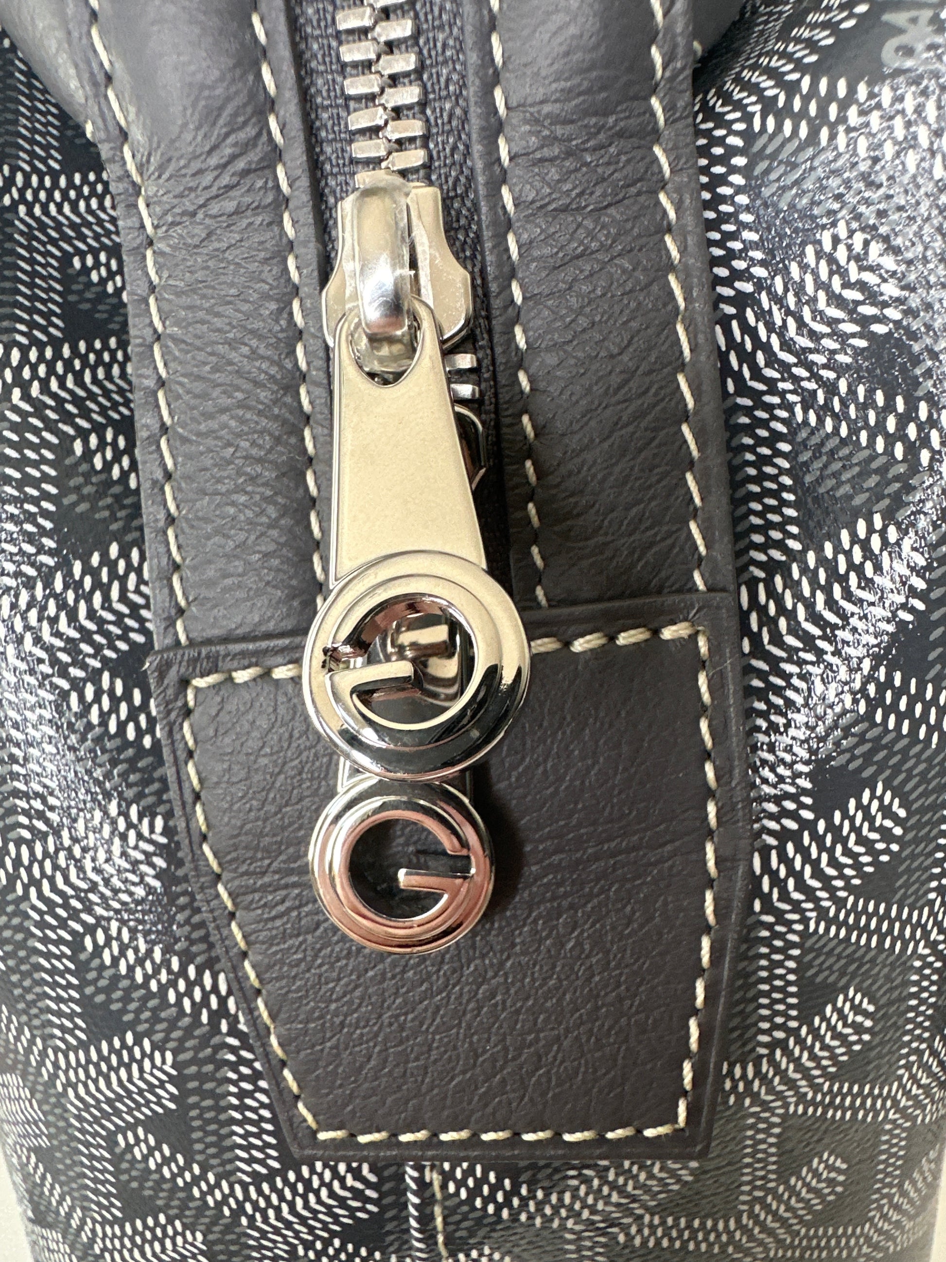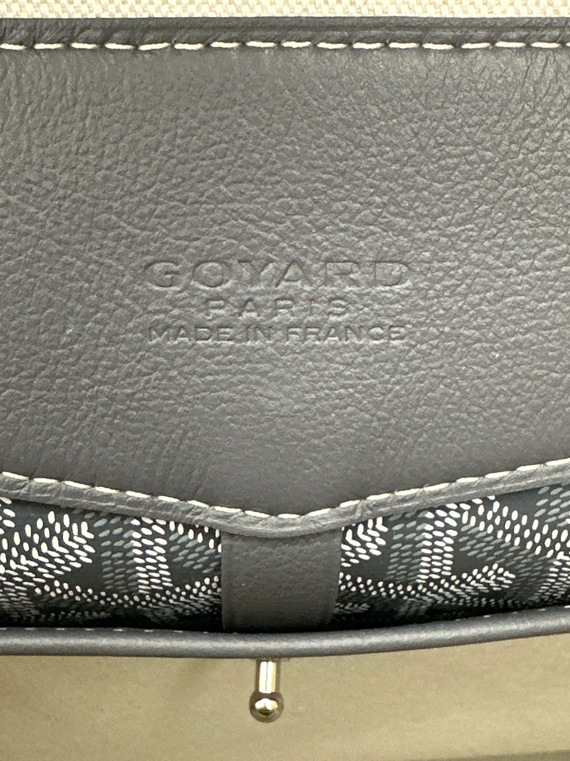 Brand New! Excellent condition. Grey exterior is made of Goyardine canvas and Chevroches calfskin with Palladium zipper with double sliders. Interior linen and cotton. Sold as is. All sales are final.